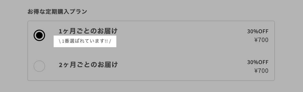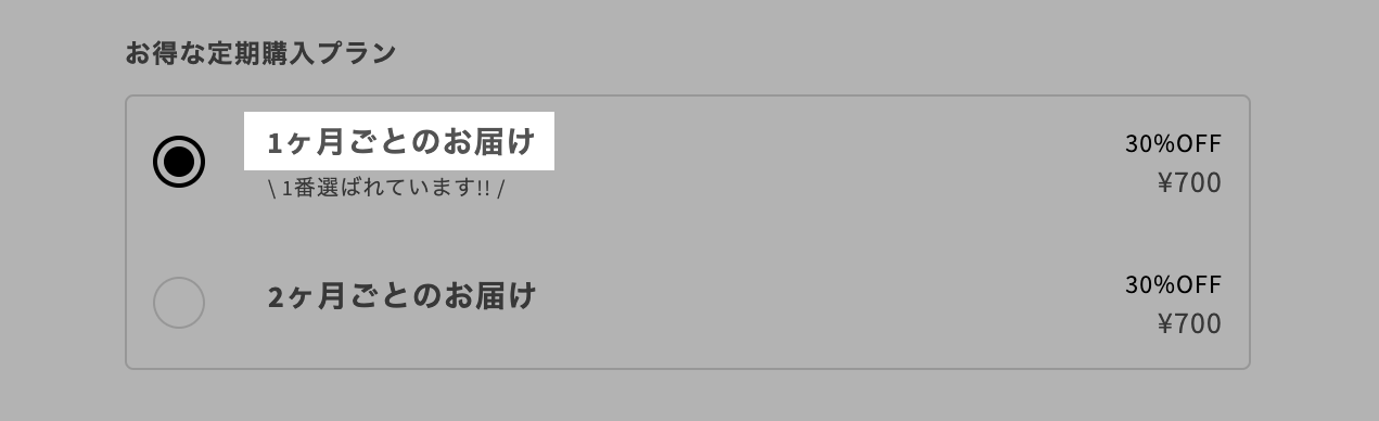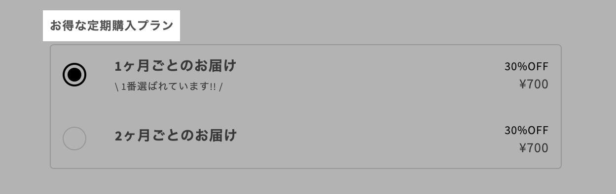 定期購買プランの標準選択設定に関わらず最初から定期購買が選択されている状態になります。