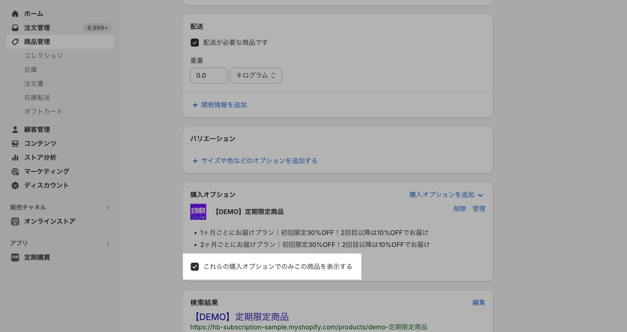 これらの購入オプションでのみこの商品を表示する*にチェックを付ける