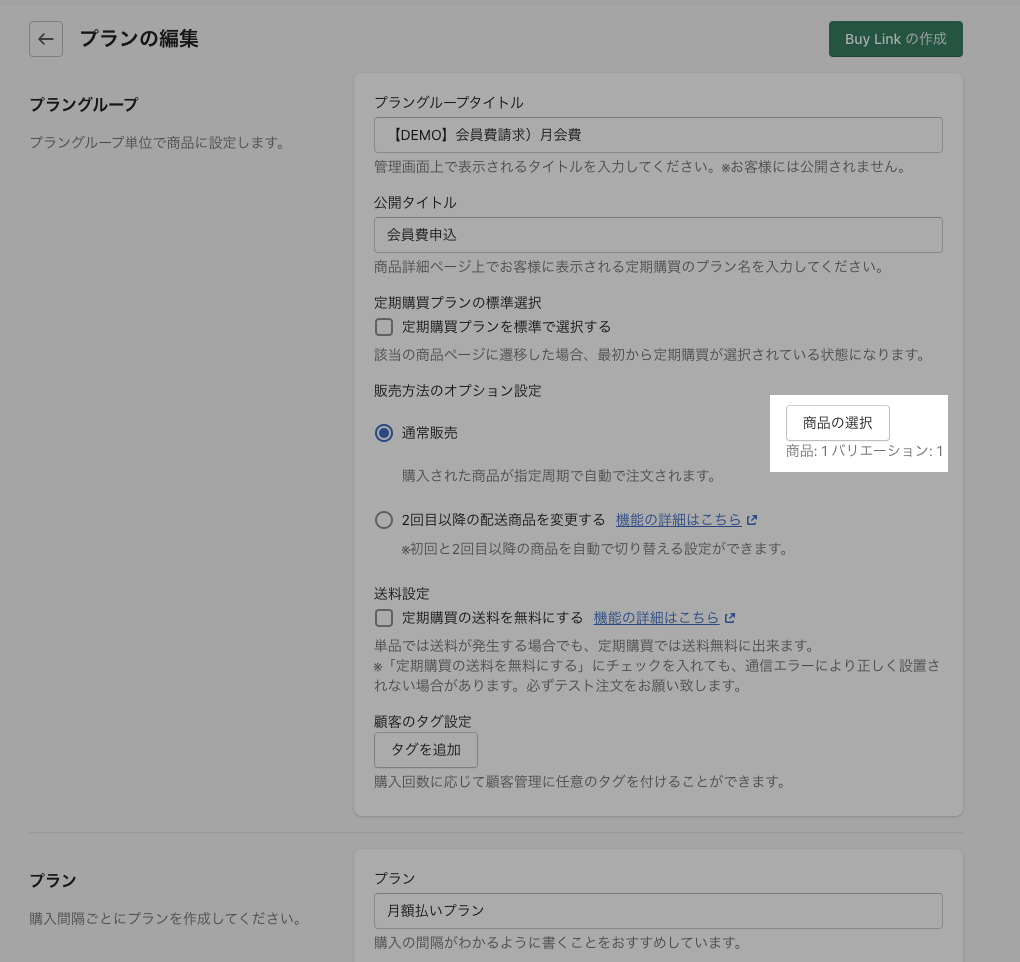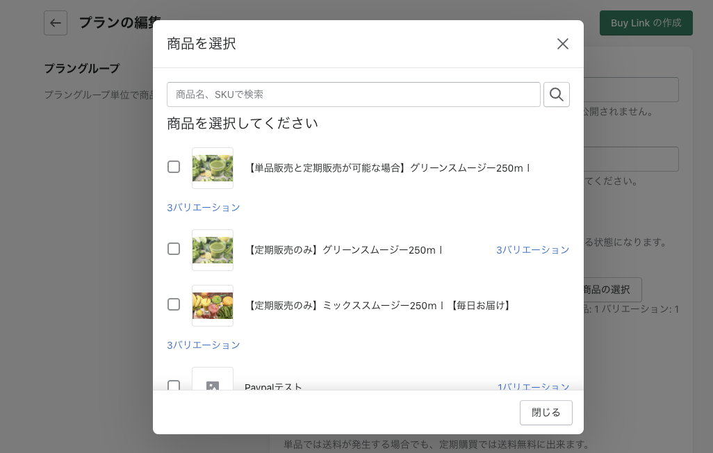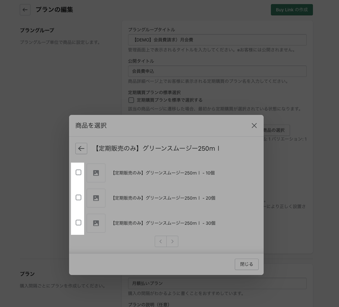 プラングループに紐付けたい商品を選択する