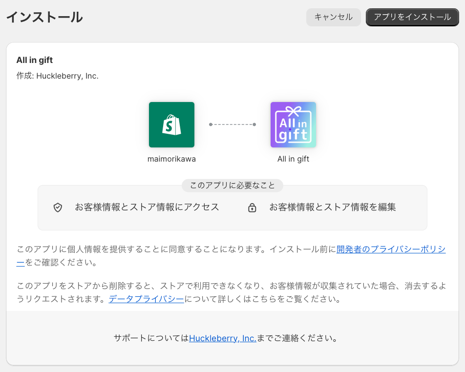 定期購買アプリとAll in giftアプリの両方の設定が必要になります。
