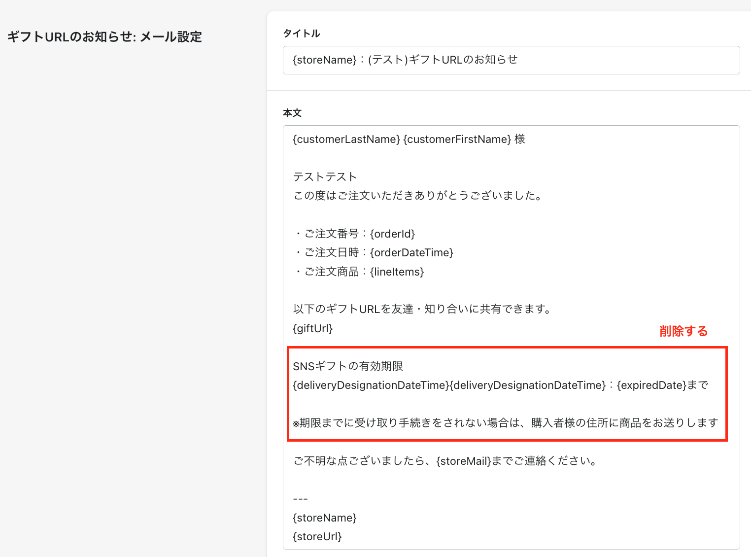 初期設定では有効期限についての記載がありますので適切に削除や編集する必要があります。