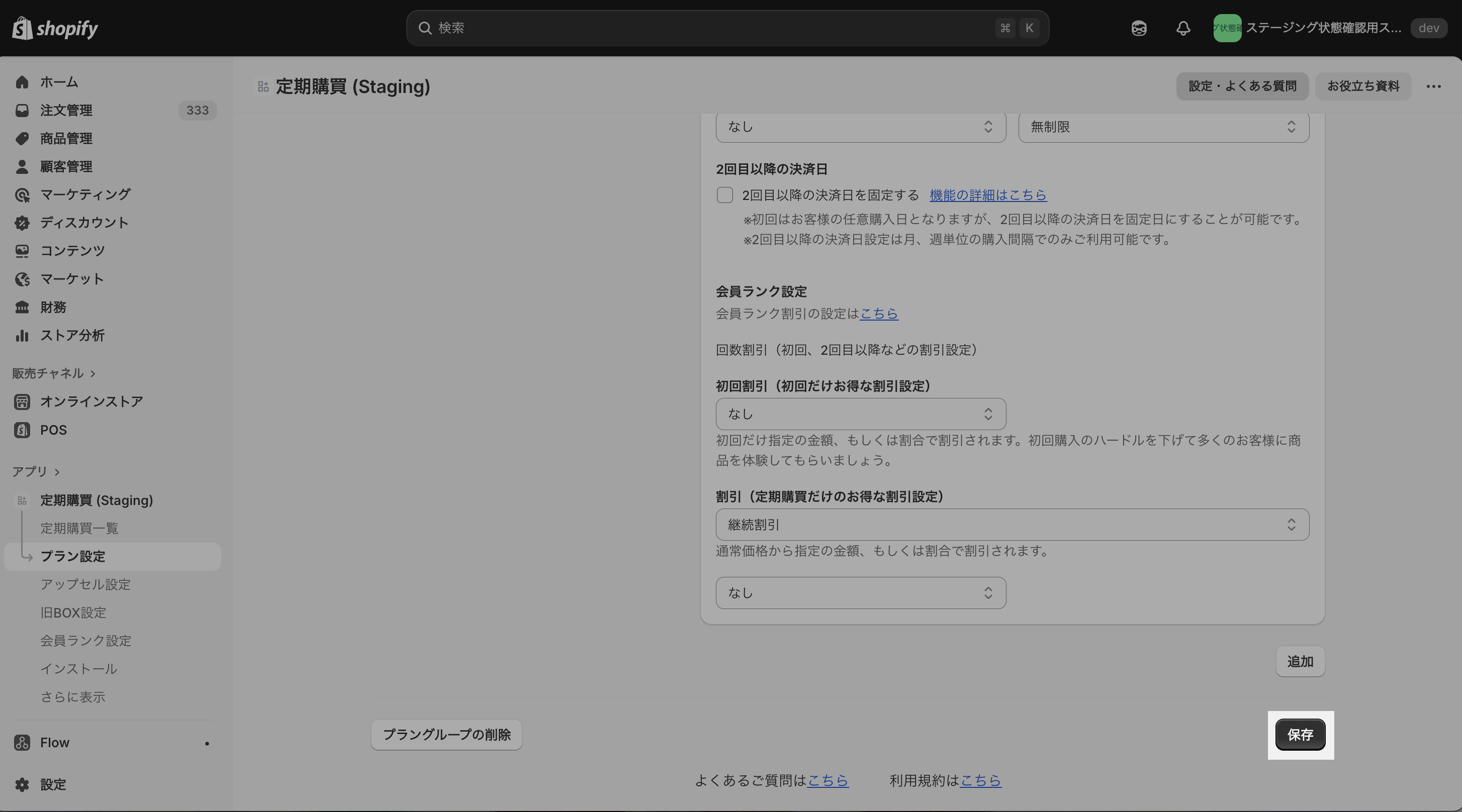 プラン設定より通常定期プランを選択。任意のプランを開く