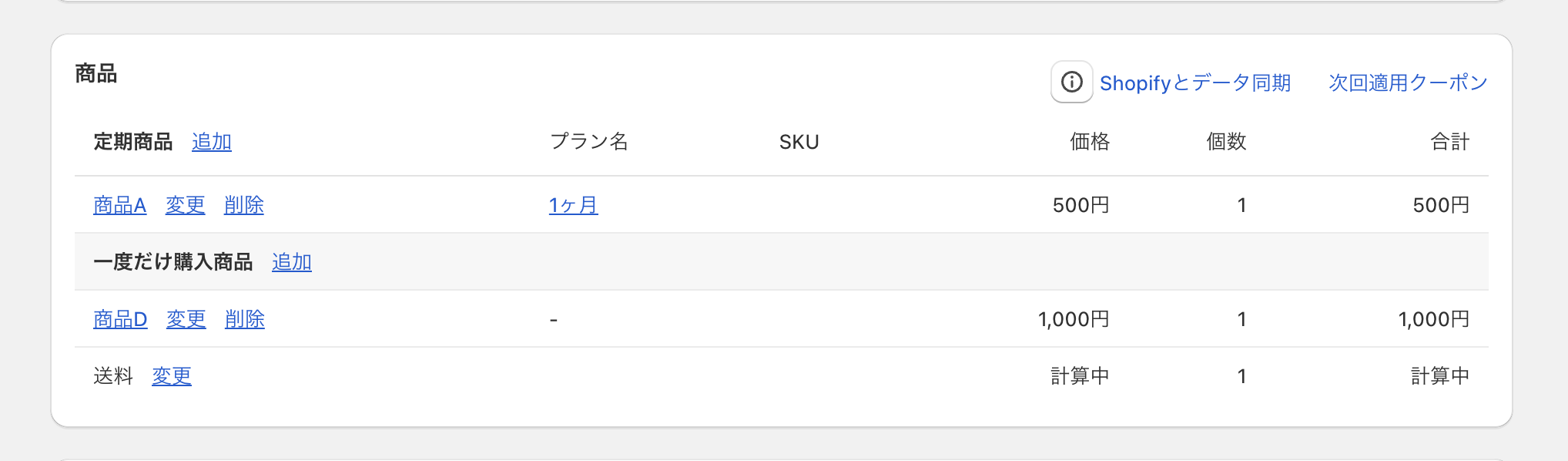 追加した「一度だけ購入商品」は、 次回注文に反映された後、自動的に契約から削除されます