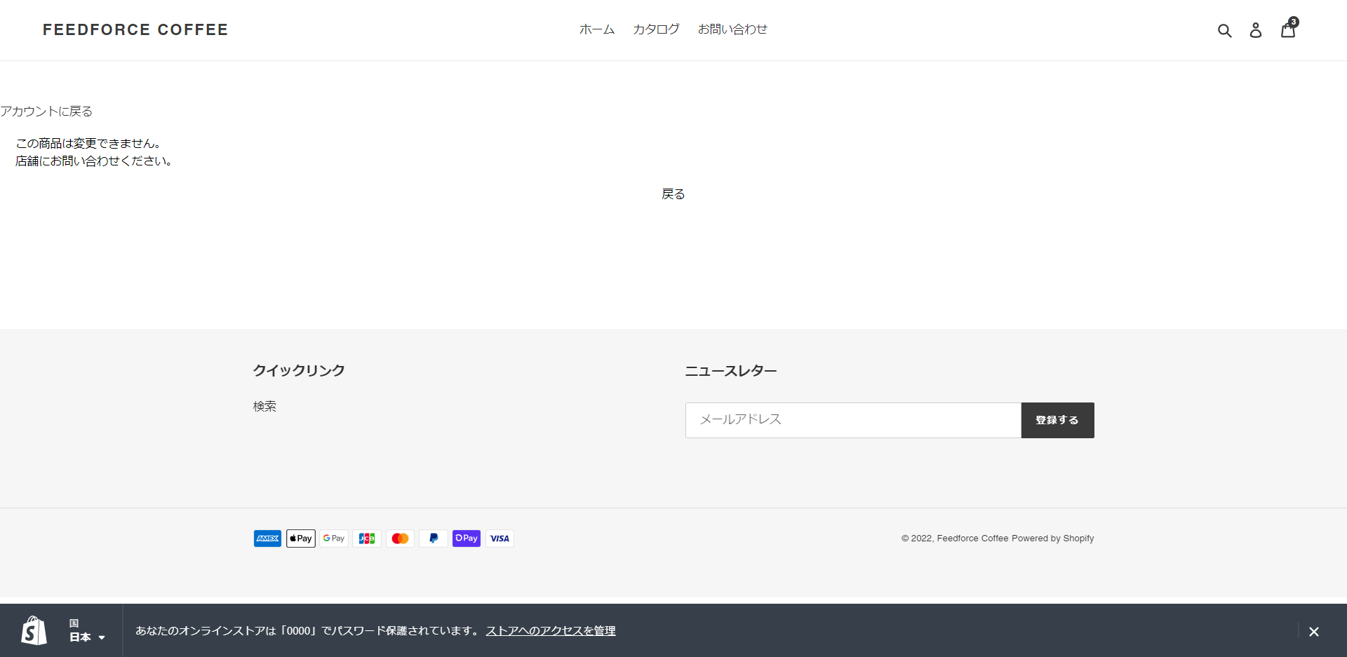 マイページ上で追加可能な商品が存在しない場合は、商品追加画面には以下のような注記が表示されます。