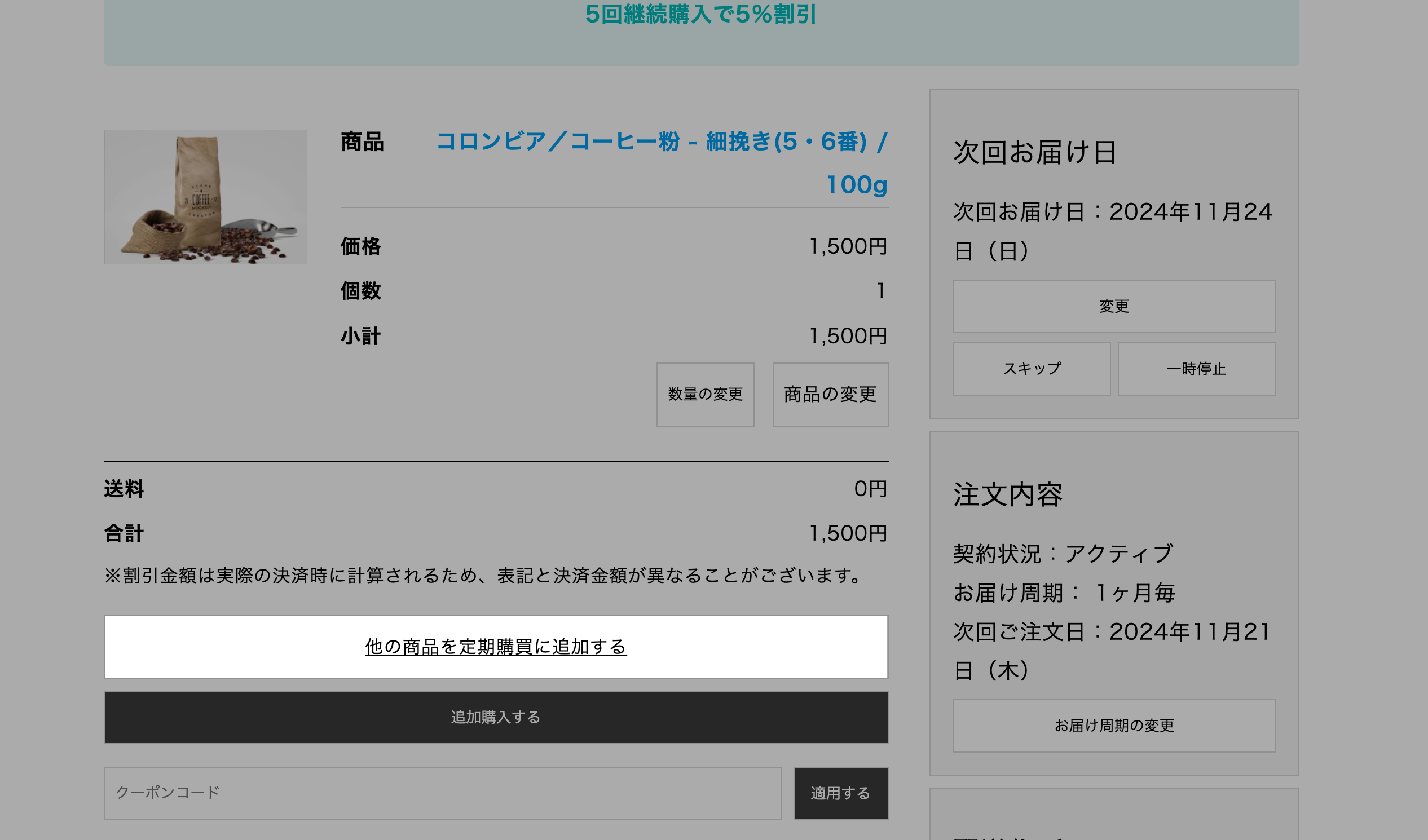 該当の定期契約内で、現在契約していない商品(バリエーション)