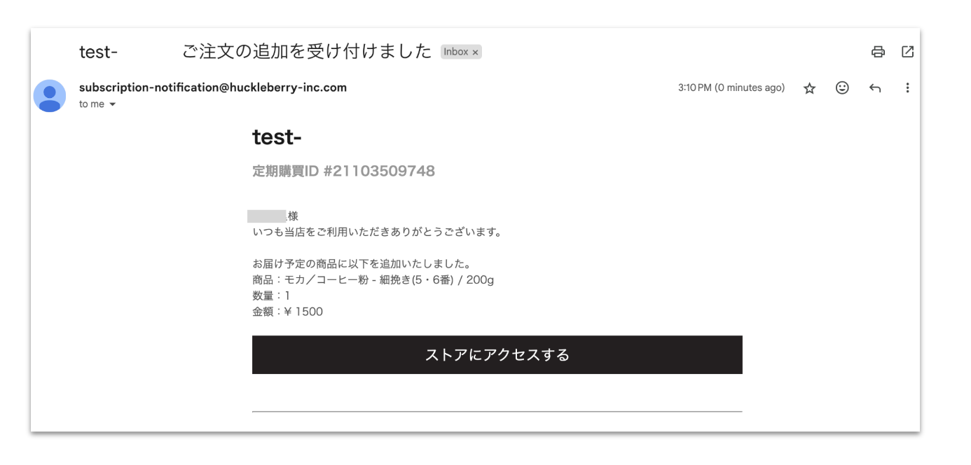 定期契約に新たな商品を追加した場合はストアと顧客へ以下のような通知が送付されます。