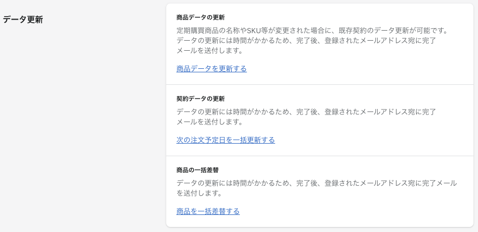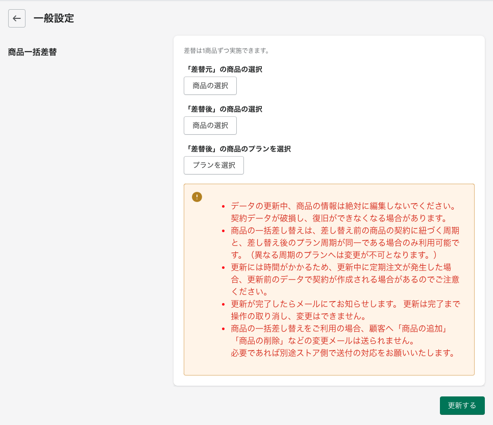 商品のリニューアルに伴い、旧商品の販売を終了して新商品に切り替える場合、既存の定期購入者に対して旧商品から新商品への一括差替を行うことが可能です。