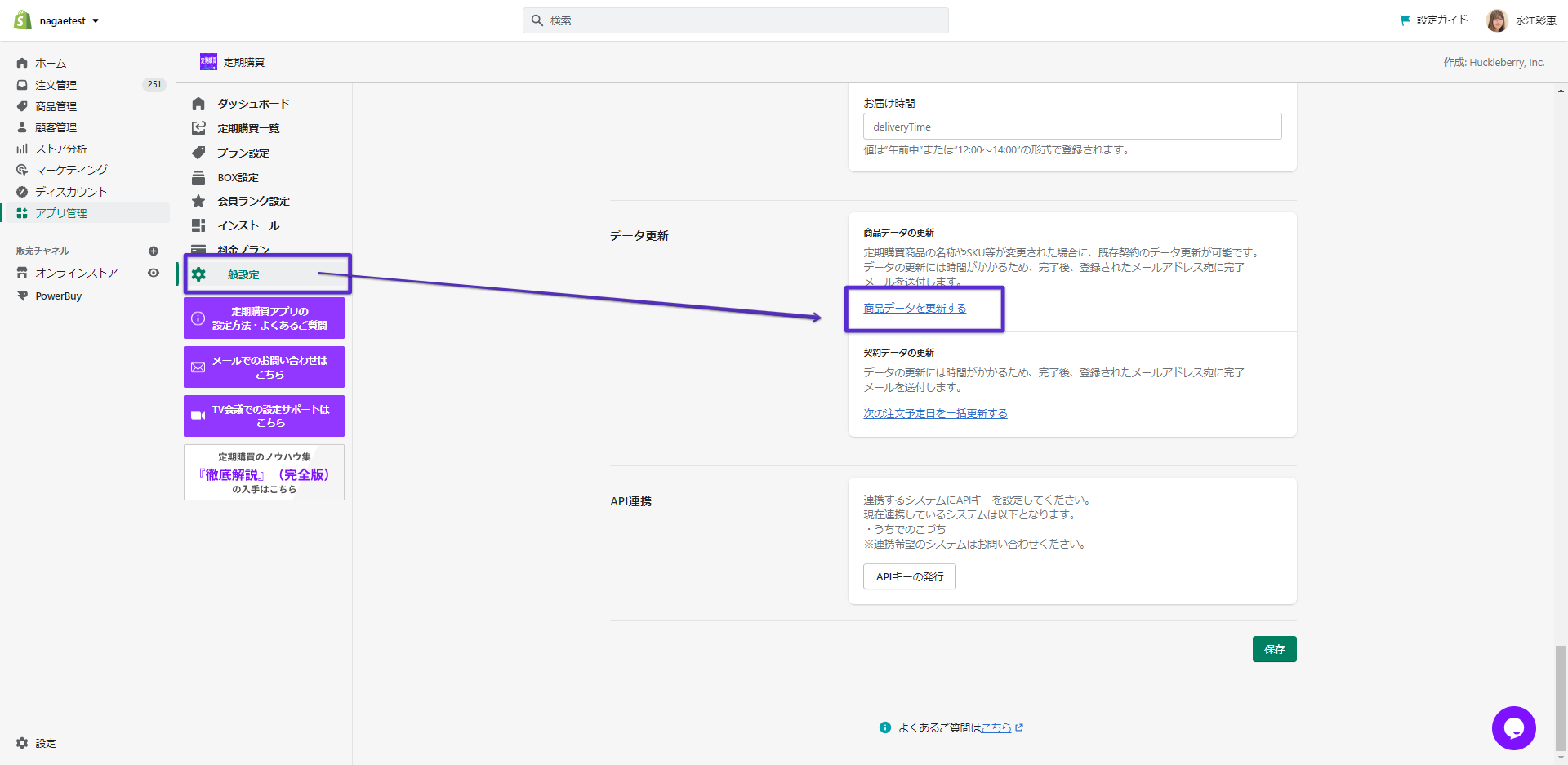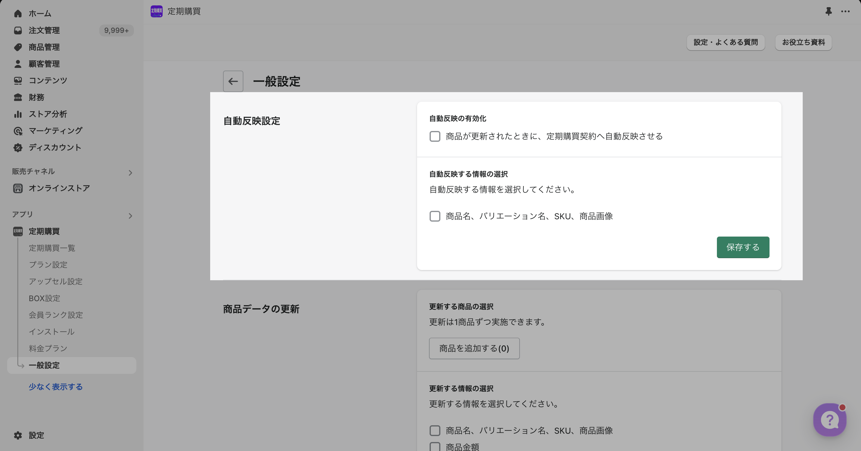 「一般設定」>「商品データを更新する」を選択します。