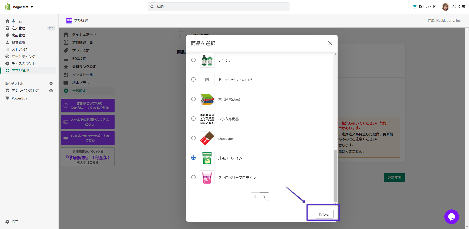 商品を選択したら「閉じる」を押してください。