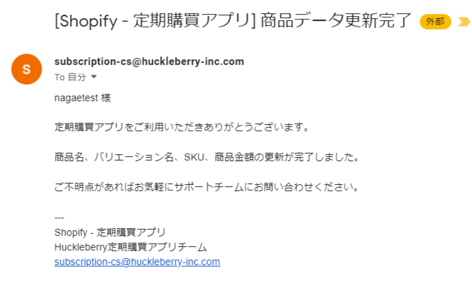 更新完了後はストアのアドレスへ下記のような通知が送付されます。