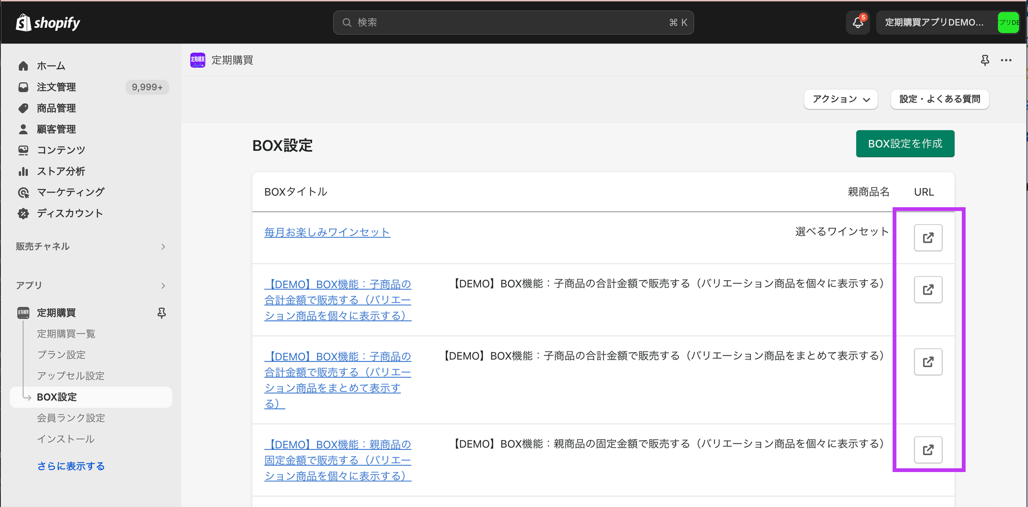 テーマファイルにコード編集を行えば可能です。商品一覧ページのファイルにて、BOX親商品をクリックした際の遷移先がBOXのURLとなるようコード編集してください。BOXのURLは下記の箇所から確認できます。