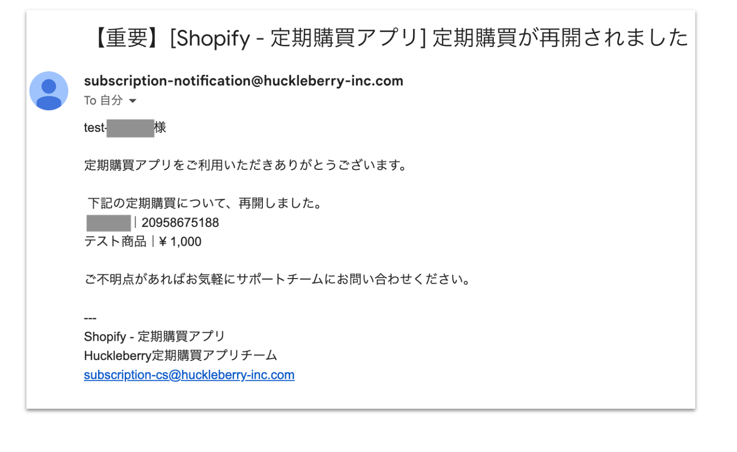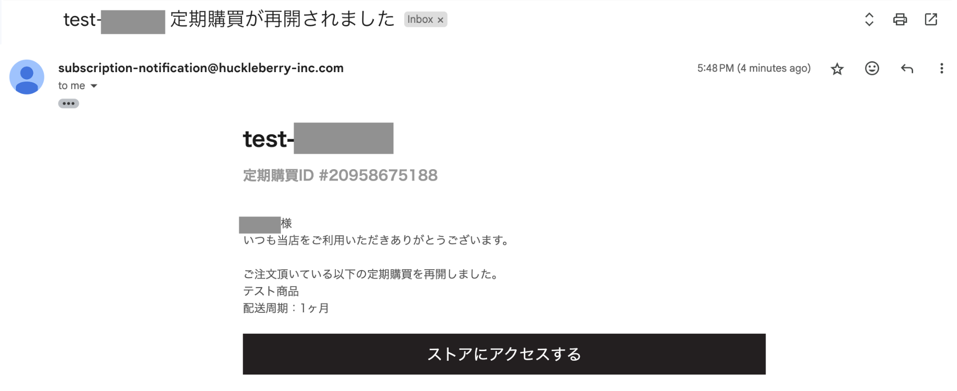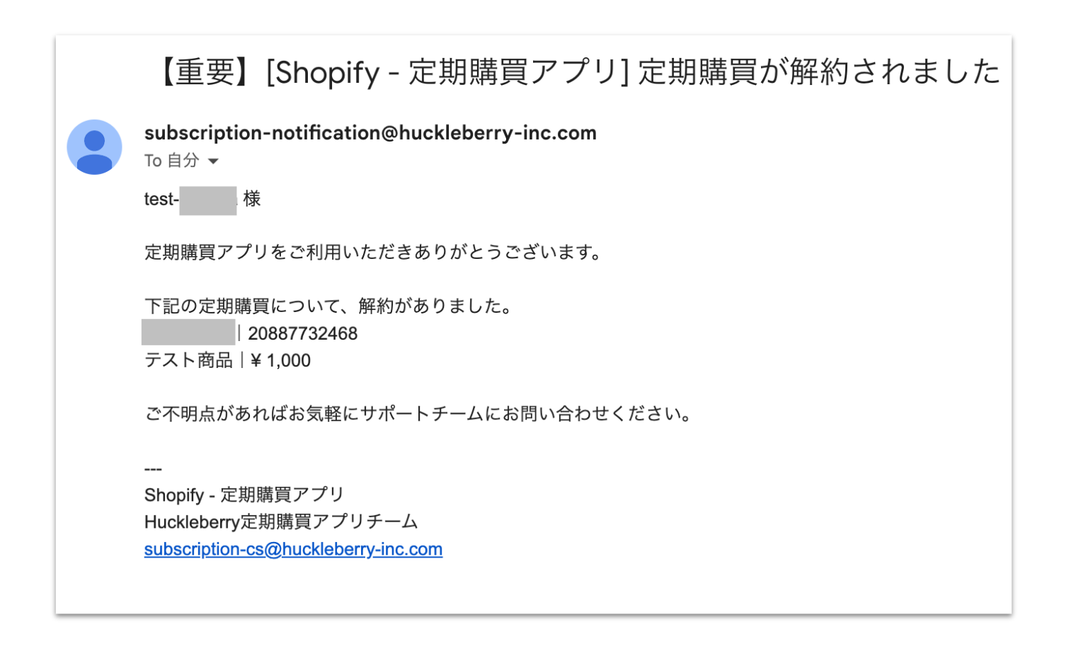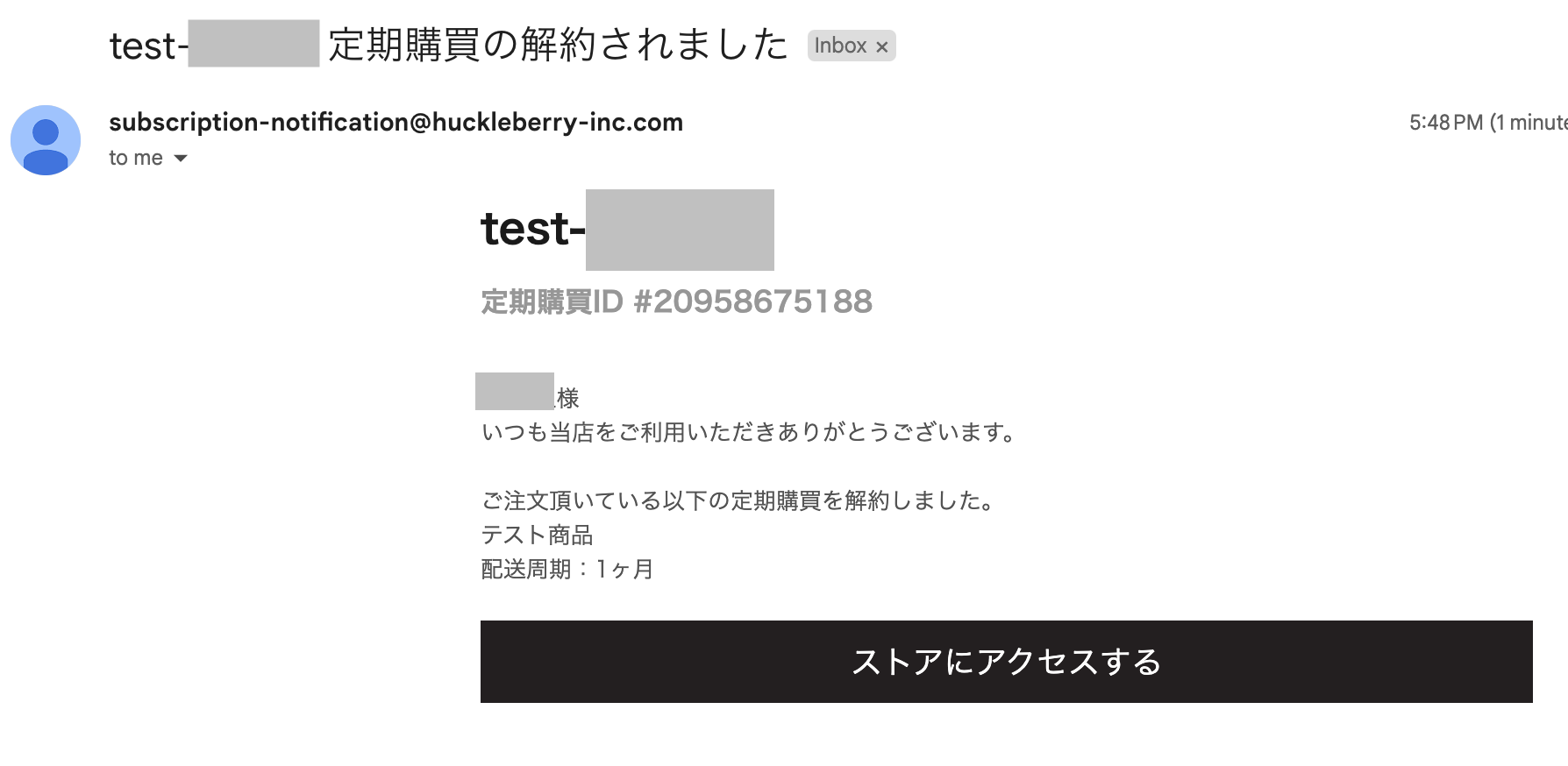 定期契約の解約・再開時はストアと顧客宛に下記のような通知が送付されます。