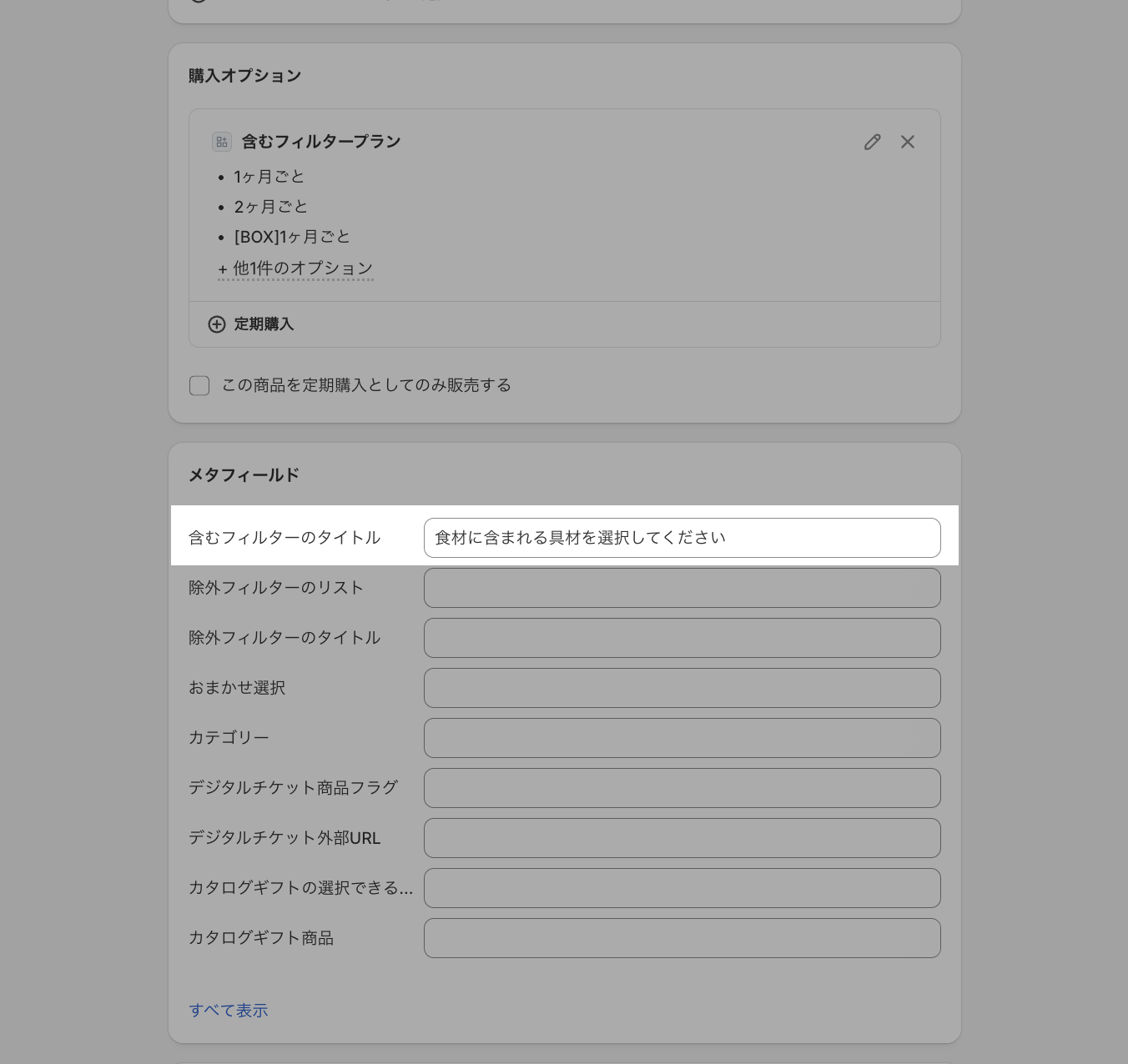 ピン止めすると商品に対してメタフィールドの設定ができるようになります。