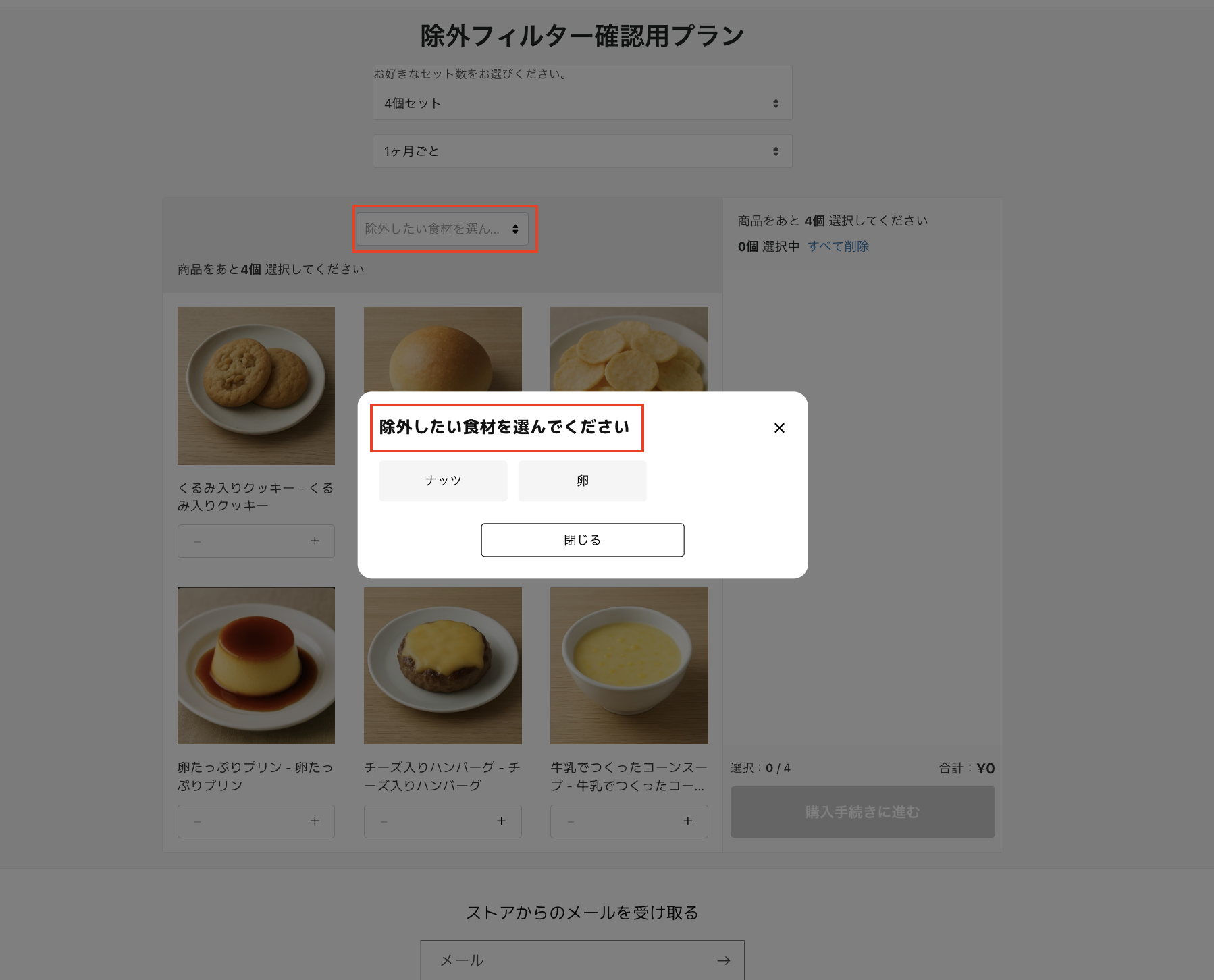 • 卵やえびなどのアレルゲンを含む商品を除外して表示する