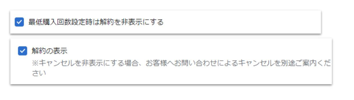 また、最低購入回数の適用時に解約ボタン等を非表示にする設定をしている場合、最低購入回数を満たすまでは該当機能のボタンが顧客マイページ上に表示されなくなります。