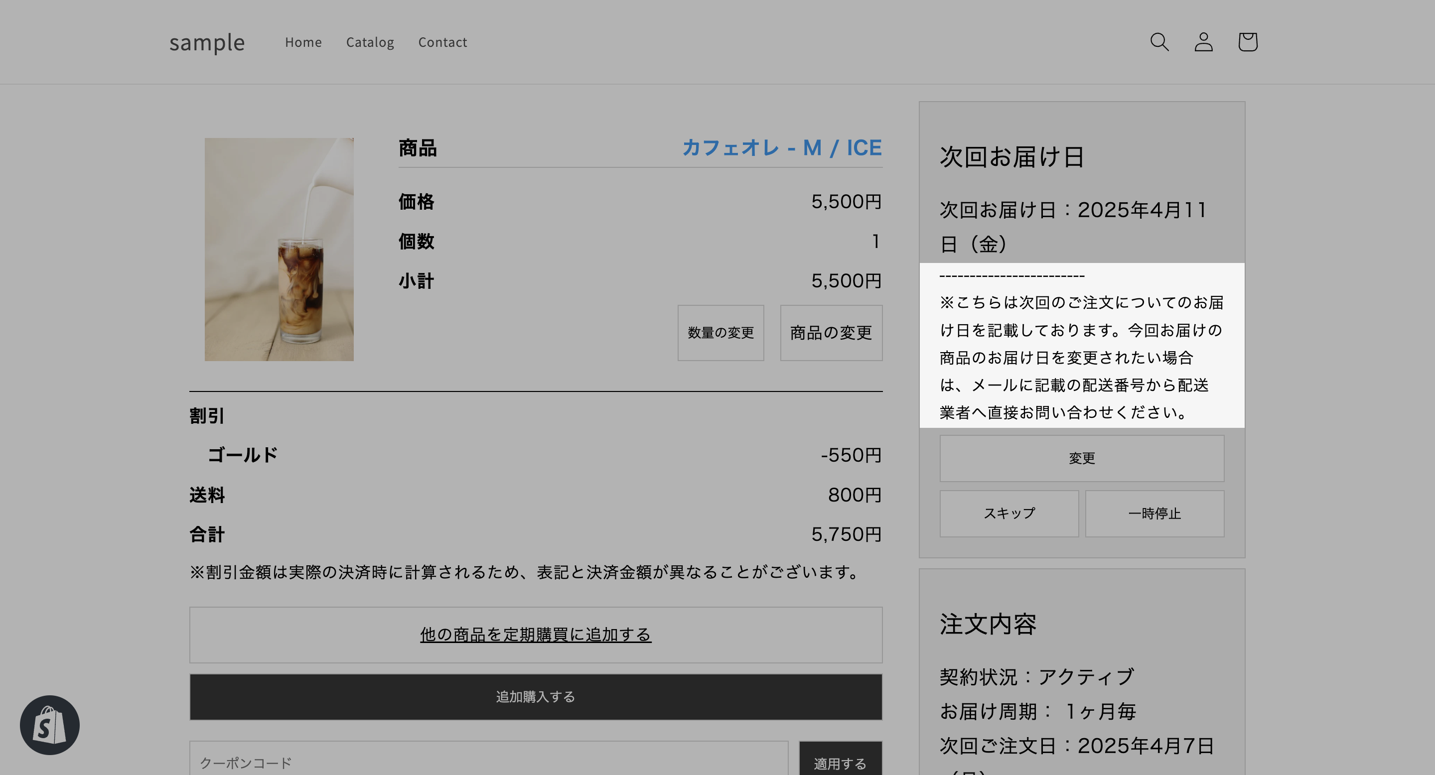 ↓ 設定したテキストが、定期購買マイページの次回お届け日エリアに反映されます。