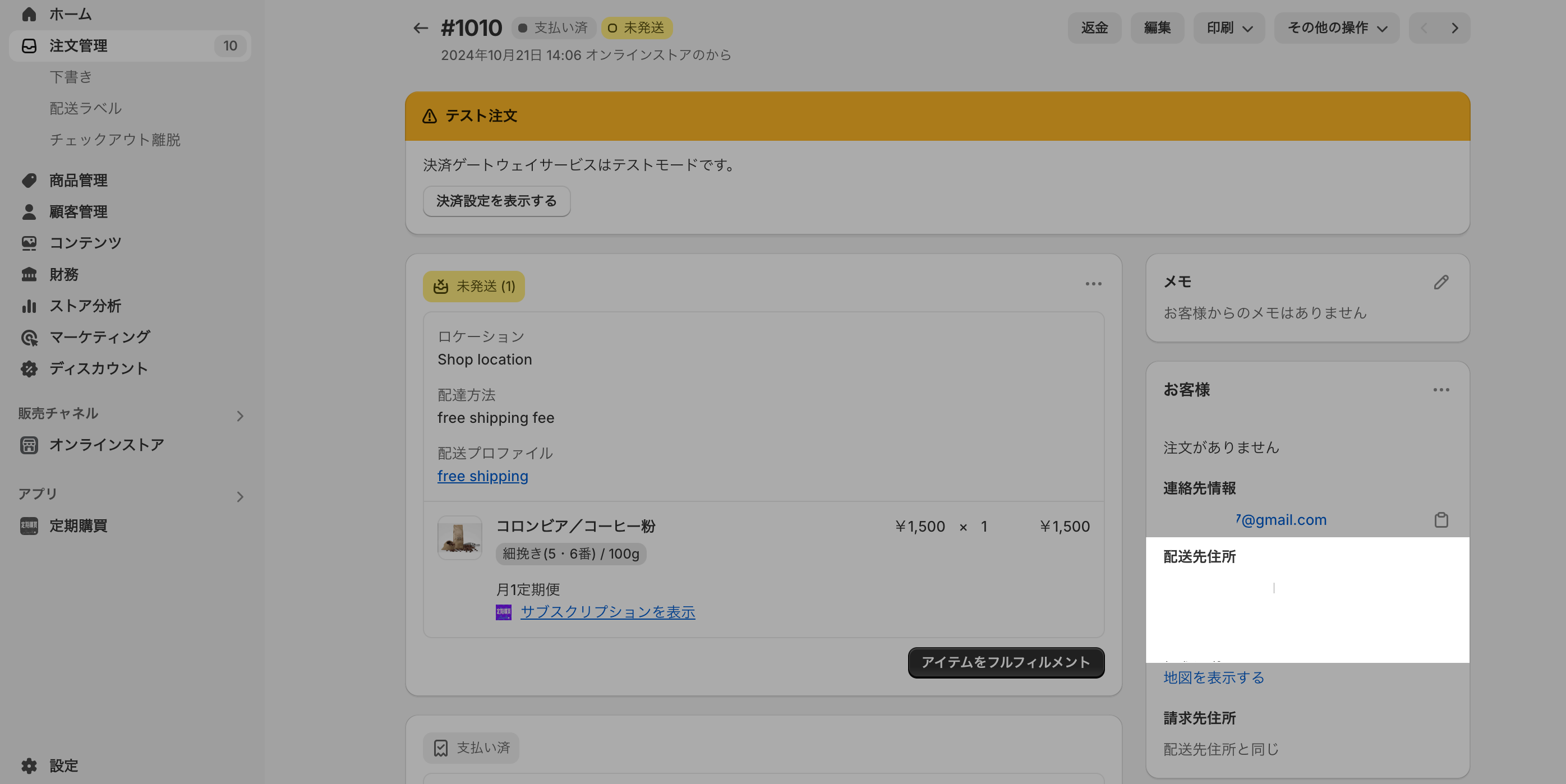 ※定期購買アプリで管理している配送先情報と、Shopifyの顧客情報は異なります。そのため、