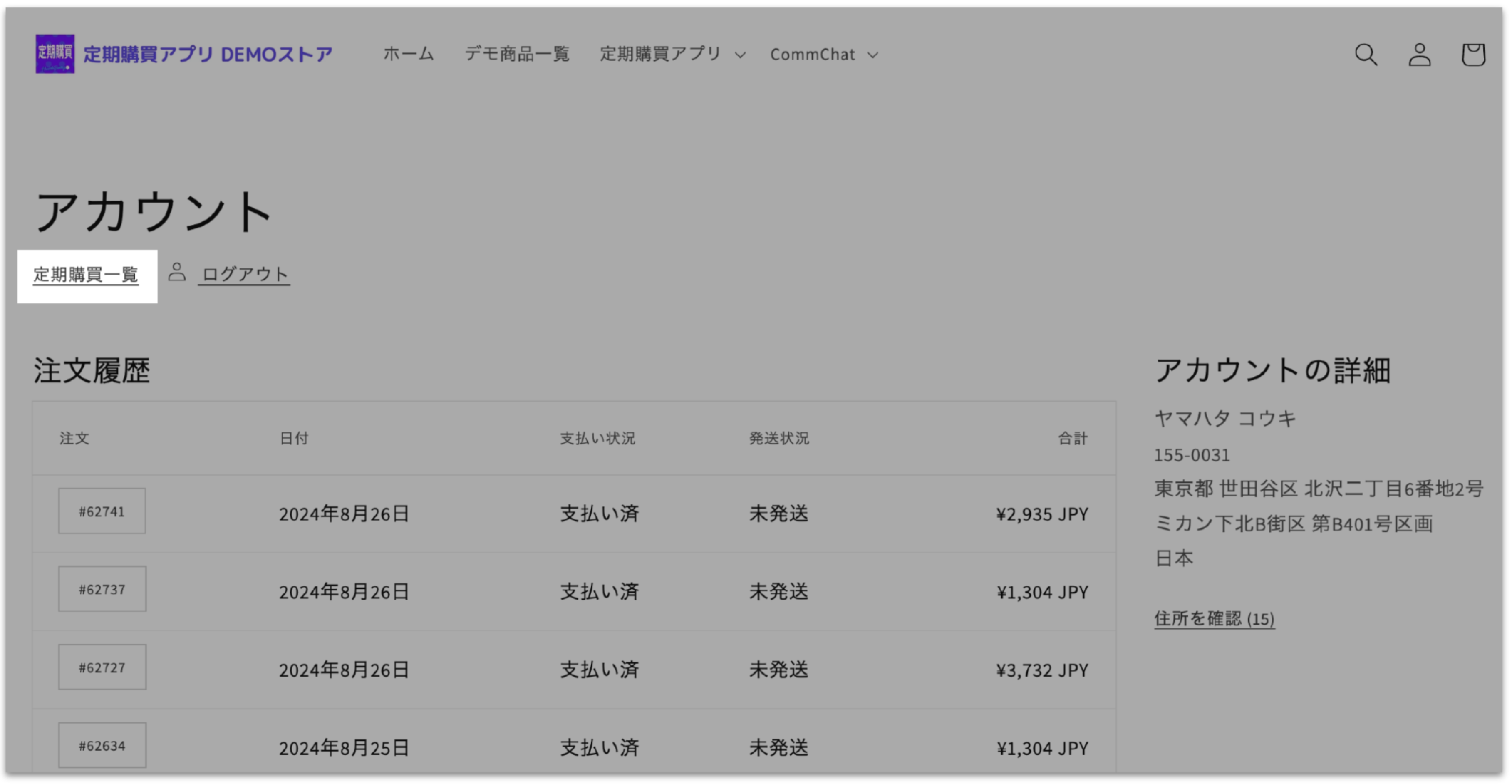今まで購入した定期契約が一覧で表示されます。