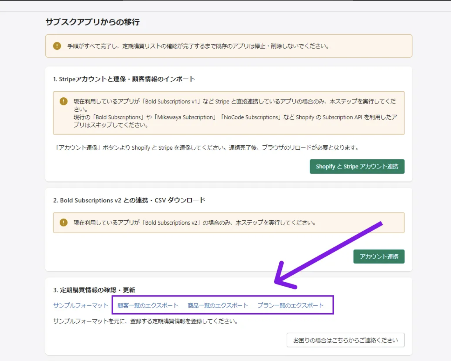 2. 旧BOX契約のエクスポートでエクスポートしたもの)顧客ID、商品バリアントID、プランIDデータ (