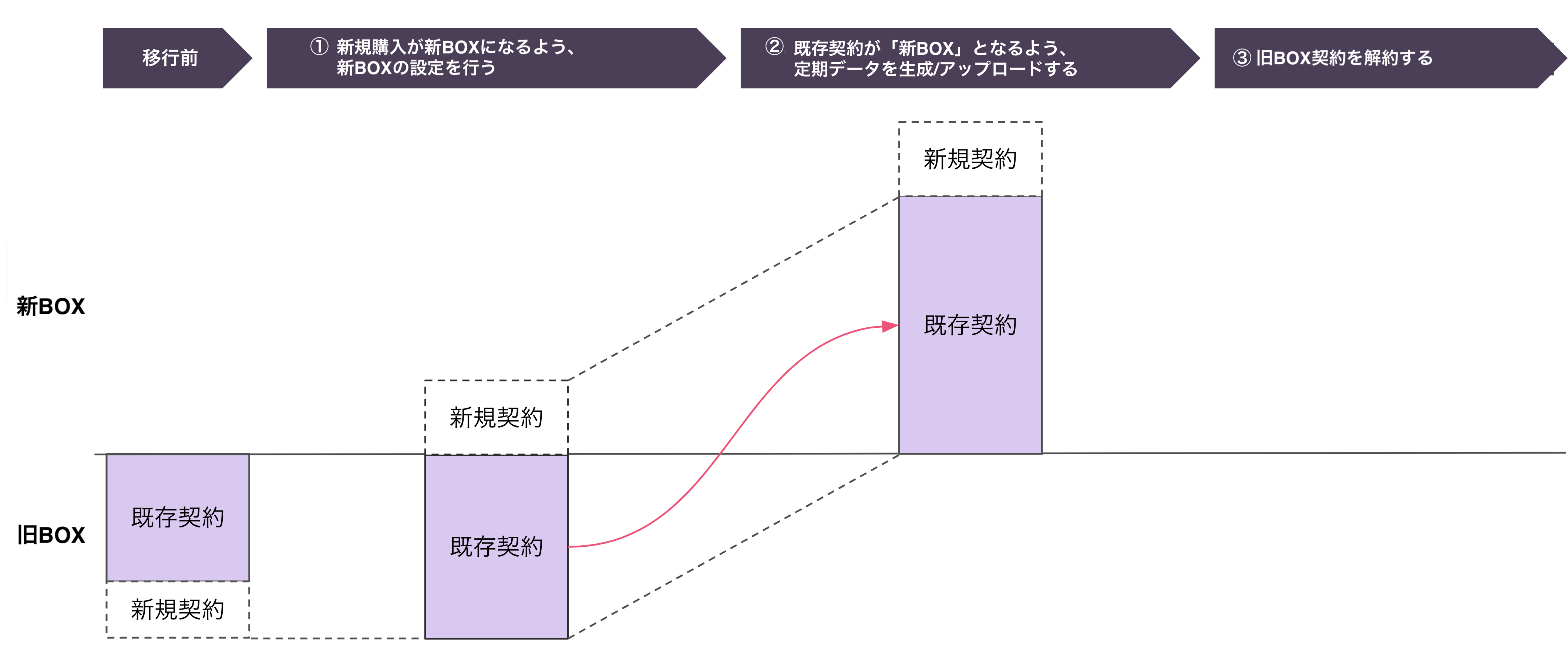 従来のBOXを契約しているお客様のご契約を、新しいBOX契約に移行するための方法を記載します。