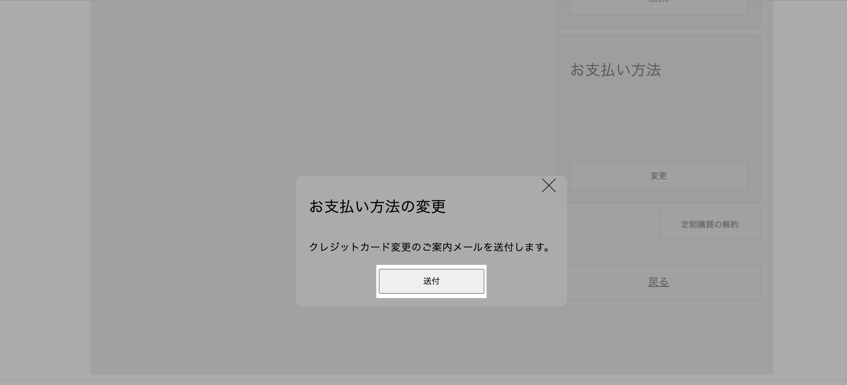 お支払い方法の変更画面で