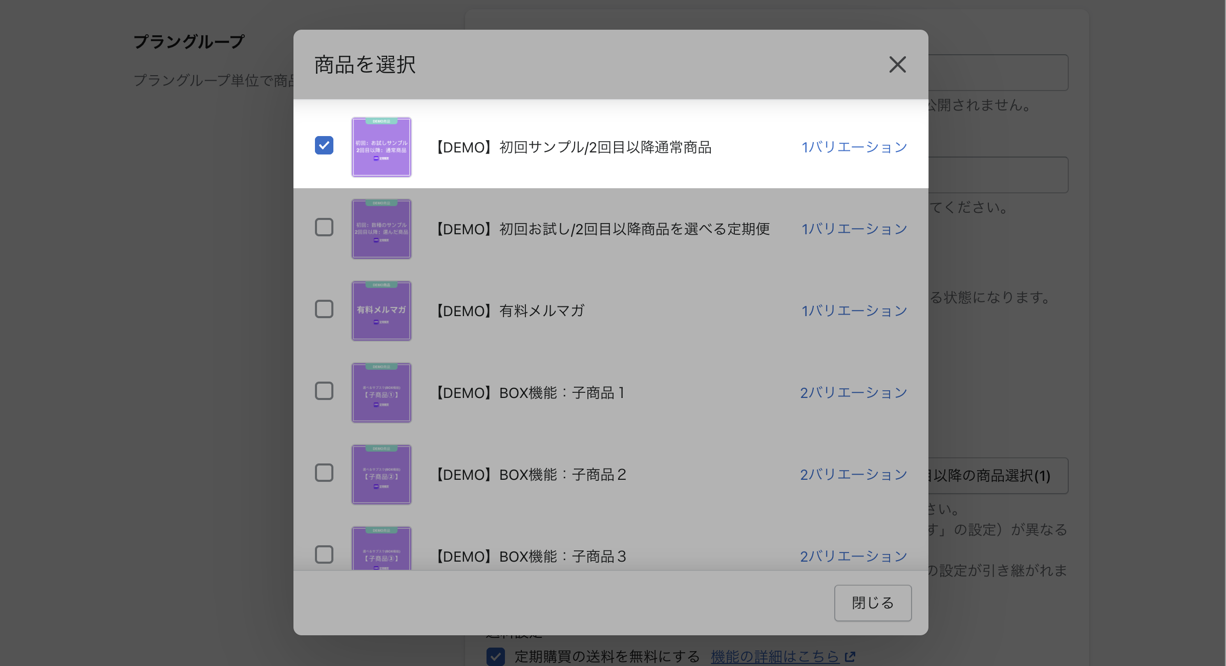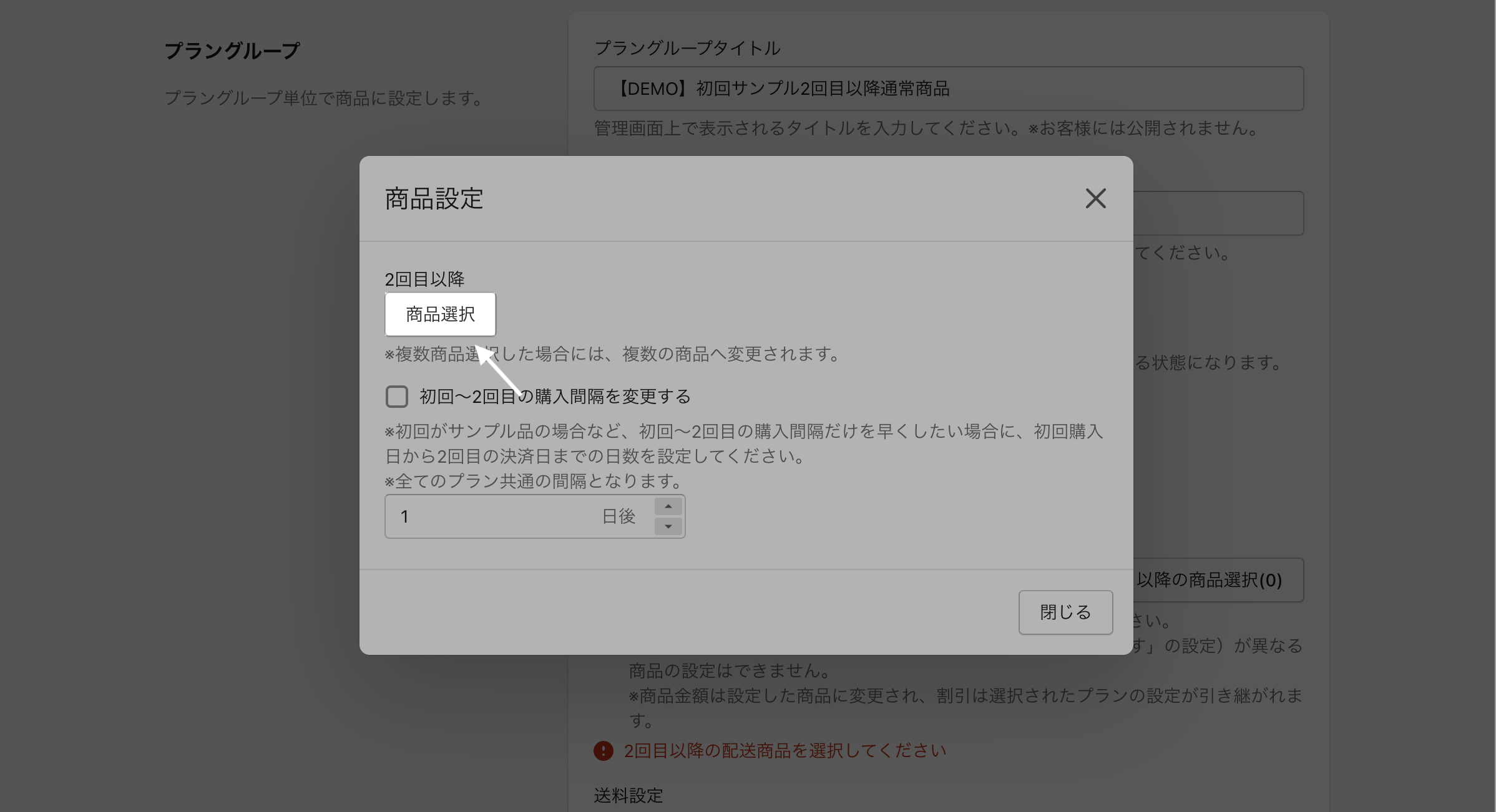 2回目以降に届ける商品を選択し「閉じる」をクリック