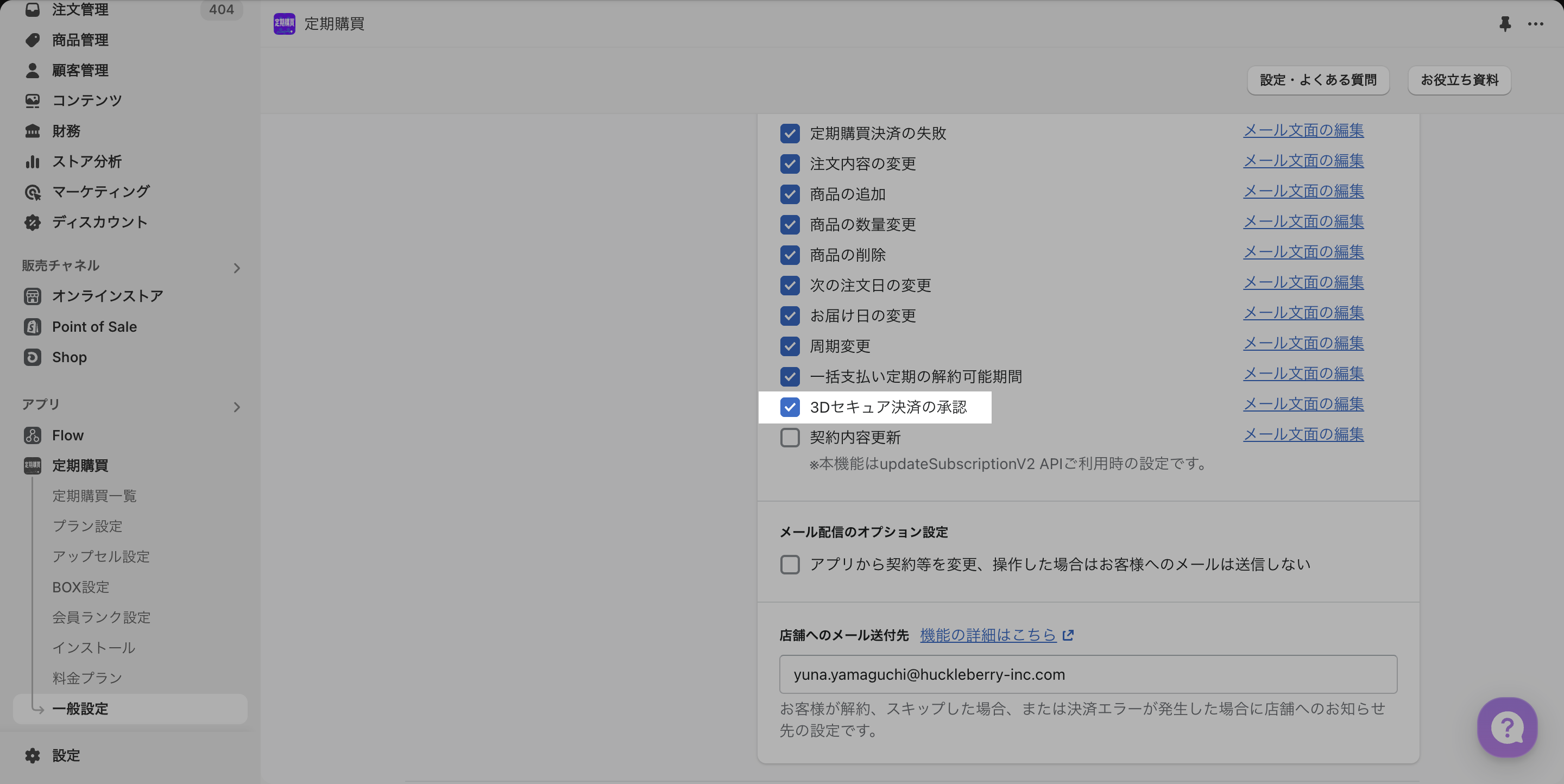 3DセキュアによりShopifyへの決済リクエストが1日以上保留されている契約の場合、定期契約詳細画面上に実行中:顧客承認待ち と表示されます。