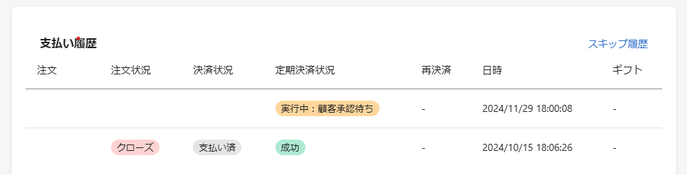 お客様が承認しない場合、次回以降の注文は作成されません。