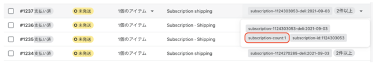 Shopifyアプリ「定期購買」では注文管理の各注文に継続回数のタグが自動付与され、この継続回数タグは受注管理システム(OMS)と、倉庫管理システム(WMS)の一体型システム「LOGILESS(ロジレス)」にも自動反映されます。