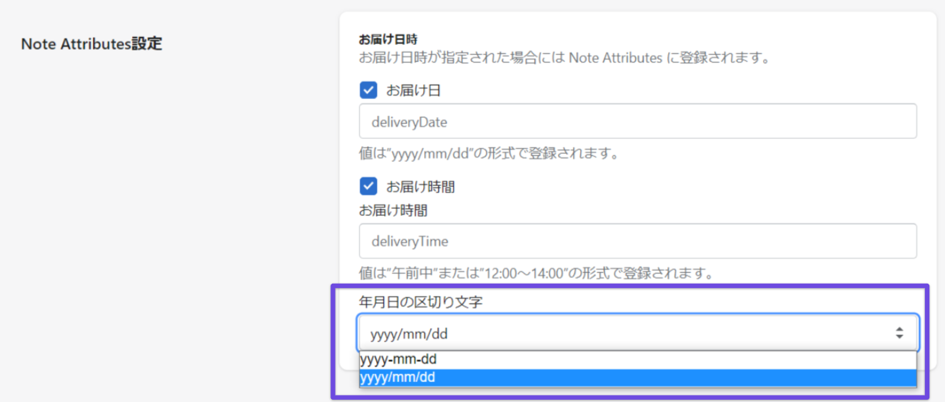 お届け日の表示フォーマットの変更(yyyy-mm-ddと、yyyy/mm/ddから選択可能。)